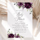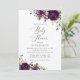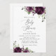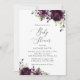 Convide amigos e família de estilo e dê o tom para seu dia especial com este charmoso convite para chás de fraldas. Design apresenta flores roxas de cor d'água plum e verde em fundo branco.