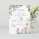 romântica sonhadora flores roxas e folhas verdes com belas borboletas convite para casamento botânico