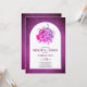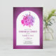 Flores roxas e abóboras caem no ensaio jantar convite para o casamento. Esta design de casamento encantadora mostra um arco em fundo vermelho roxo. No quadro há um buquê de flores e abóboras em tons roxos.
