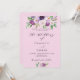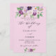 Um fundo rosa. Decorado com flores e folhagens em aquarela roxa. Personalize e adicione seus nomes e detalhes da festa.