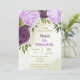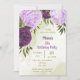 Belo convite de aniversário com flores lilás e beringelas roxas e folhas verdes Os detalhes da brilha do ouro são simulados. PARA MAIS PRODUTOS CORRESPONDENTES, clique na coleção acima ou entre em contato comigo