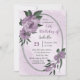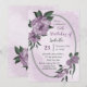 Convite de aniversário único com flores roxas roxas e folhas verdes românticas empoeiradas em uma bela estrutura geométrica. PARA MAIS PRODUTOS CORRESPONDENTES, clique na coleção acima ou entre em contato comigo.