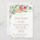 Convite de aniversário floral doce 16/16 num fundo branco claro (variável) com rosas vermelhas de coral com folhagem verde-menta e um roteiro de na moda ouro. +++++++++ Fácil de personalizar com seus detalhes! +++++++ O convite é adequado para as bolsas mensageifestas de aniversario elegante modernas de primavera de cor-de-água cinzenta no verão ou outono caem ao ar livre no quintal do jardim.