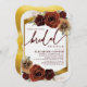 Este chá de panela apresenta óleo rústico pintado com borda arborizada terra firme e tonta outono outono flores sobre verde e grama pampas com uma elegante estrutura foliar de ouro e fundo.