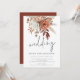 Flores Rústicas de Terracota Letra Informal Casamento. Elegantes flores e frutas e gramíneas em tons suaves de terracota, marrom e creme fluem de cima para baixo. Casamento está num estilo de letra manuscrita trendy. Personalize facilmente o restante do texto com seus próprios detalhes. Para a conveniência dos seus convidados responderem e verem mais detalhes, eles podem ler o código QR que leva ao site do seu casamento. Seu código QR será gerado automaticamente para atualizar o código de exemplo no design, quando você simplesmente alterar a URL de exemplo no modelo com a URL do site do seu casamento.