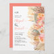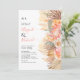 Flores secas de cor aquosa tropicais, folhas de palma e convite para o casamento de ervas-palmeiras. Este convite para o casamento de corais mostra uma bela combinação de flores secas de aquarela tropical, folhas de palma e grama de pampas. O arranjo de palmeiras secas, proteína e rosa flores, juntamente com a grama pampas, adornam elegantemente o lado direito do convite. No verso, um lindo fundo de pêssego adiciona um toque de calor e charme.