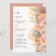 Flores secas de cor aquosa, palmeiras e casamentos outono de erva-dos-pampas. Apresenta um arranjo de palmeiras secas, proteína, rosa e erva-de-palma ao longo do lado direito. O verso inclui um fundo de terracota suave.