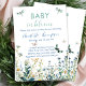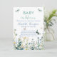 Convide amigos e família para comemorar a chegada de um doce bebê com este elegante convite para o chá de fraldas de flor selvagem primavera, com flores silvestres a aquarela em tons de azul-crepúsculo e verde-verde-verdejante.