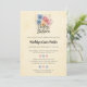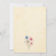 Um design floral suave e elegante com flores silvestres de cor aquosa delicadas em tons de rosa-pincel, azul-poeirento e amarelo-ouro quente. A frase "Baby in Bloom" é escrita em caligrafia graciosa, cercada por um buquê de flores frescas de jardim. Um plano de fundo em estilo de pergaminho de vintage que combina com design de trás adiciona um eterno e um toque artesanal. Perfeito por celebrar um pequeno a caminho com calor e charme.