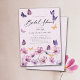Um chá de panela elegante com flores silvestres (cosmos) cor-de-rosa e púrpura, em cor d'água, roxo e rosa, assim como borboletas douradas com borboletas douradas (são efeitos digitais, não folhas reais ou reluzentes!) e caligrafia moderna, com uma flor silvestre rosa no verso. Elegante e chic, é o convite perfeito para um almoço de noiva, brunch ou festa no jardim do quintal, ou para qualquer noiva que ame flores silvestres, borboletas e designs rústicas, de campo com um toque de amor romântico.