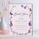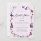 Um elegante chá de panela de estrutura floral de vassoura com flores silvestres (cosmos e outras flores e gramíneas comuns) em aquarela, borboletas roxas e cor-de-rosa com borboletas douradas (são efeitos digitais, não folha real ou brilho!) e caligrafia moderna, com uma flor silvestre rosa no verso. Elegante e chic, é o convite perfeito para um almoço de noiva, brunch ou festa no jardim do quintal, ou para qualquer noiva que ame flores silvestres, borboletas e designs rústicas, de campo com um toque de amor romântico.
