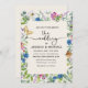 Flores selvagens e borboletas enquadram o convite de casamento com uma moderna fonte escrita à mão. Entre em contato comigo para obter assistência com suas personalizações ou para solicitar outros produtos Zazzle correspondentes ou coordenadores para o(s) seu(s) evento(s).