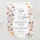 Um design elegante com flores silvestres coloridas e um tema de "queda no amor" se enquadra com detalhes que você pode adicionar no verso.