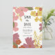 Anuncie seu dia especial com este lindo convite "Save the Date" temático floral! Com uma encantadora mistura de tons suaves de rosa, laranja rico e amarelo vibrante, este design exala calor e alegria, perfeito para definir o tom da sua celebração que se aproxima. As flores desenhadas à mão dão um toque delicado e artístico ao seu dia especial. Personalize-o com os detalhes do seu evento para criar uma primeira impressão memorável para os seus convidados.