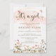 'É um convite para chá de fraldas floral cor d'água de uma garota, cor rosa floral e cor d'água, com flores silvestres e borboletas bonito. Estes bonitos e elegantes convites para chuveiros cor-de-rosa e dourados são facilmente personalizados com o seu texto. A parte de trás do convite apresenta um padrão de flor silvestre de aquarela correspondente.