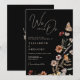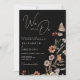 Convite de Renovação de Voto de Aniversário Flores Selvagens Ainda Fazemos com uma linda borboleta e flores silvestres em tons de burgundy, terracota, creme contra um fundo preto escuro. Palavras escritas "nós fazemos". Lindos convites de aniversário florais de prado para casais que desejam renovar seus votos, ideais para renovação de votos no outono.