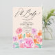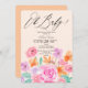 Primavera verão flores silvestres elegantes pastel cor-de-rosa-d'água floral cor-de-rosa elegante e chá de fraldas foliar verde com uma bela caligrafia escrita em coral claro de pêssego. Querida! Chá de fraldas romântico e elegante e neutro.