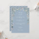 Lindas flores silvestres de folhagem floral emolduram os detalhes da sua celebração de casamento especial, definidos em tipografia branca elegante em um fundo azul desbotado chic. Projetado por Thisisnotme©
