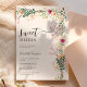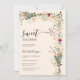 Flores silvestres do campo boêmiano primavera verão Doce 16 festas de aniversário com flores bonito do campo selvagem em boho retro laranja, vermelho, pêssego, folhas verdes, samambaia e muito mais, com uma tipografia com script escovado sobre um elegante e editável fundo de marfim bege mole.