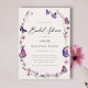 Um elegante chá de panela de estrutura floral de vassoura com flores silvestres (cosmos e outras flores e gramíneas comuns) em aquarela, borboletas roxas e cor-de-rosa com borboletas douradas (são efeitos digitais, não folha real ou brilho!) e caligrafia moderna, com uma flor silvestre rosa no dorso e um fundo de marfim moderno. Elegante e chic, é o convite perfeito para um almoço de noiva, brunch ou festa no jardim do quintal, ou para qualquer noiva que ame flores silvestres, borboletas e designs rústicas, de campo com um toque de amor romântico.