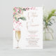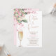 Flores Selvagens cor-de-rosa Chá de panela fetal Prosecco pétalas aquáticas modernas e pontes prosecco convite para chá com um arranjo de flor selvagem, na sua maioria rosa, em vidro champanhe e pétalas de flores. Este chá de panela de pétalas e prosecco de flores silvestres também apresenta um título de caligrafia moderna.