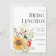 Este simples, mas elegante design de convite para o almoço de chá de panela apresenta um buquê rústico de cor d'água de vermelho, amarelo, castanho, creme, burgundy e flores silvestres de prados roxos com verde. É parte da suíte de casamentos Rustic Summer Wildflower & Sunflower criada pela Simply Farmhouse Press.