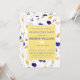 Novo Parque Lane - Convite de Festa de Formatura Elegante, com um padrão de flores silvestres azul-indigo/vazul e amarelo, com uma moldura amarela para textos, tudo em tipografia elegante. Design fofo para uma celebração de formatura na primavera.