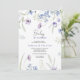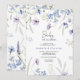 Este convite moderno de bebê em flor apresenta flores silvestres em aquarela azul claro e violeta, folhas verdes. Aproveite!