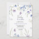 Este convite de bebê em flor tendência apresenta flores silvestres em aquarela azul claro e violeta, folhas verdes. Aproveite!