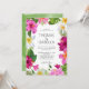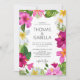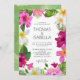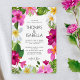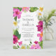 Este belo convite para o casamento apresenta um sofisticado design com fundo branco que faz com que as vibrantes flores tropicais e as folhas de palma sejam pop. Você pode adicionar facilmente seus próprios detalhes ao convite. Convide seus convidados para celebrar sua história de amor em estilo com este elegante convite para casamento tropical.