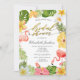Flores tropicais com folhas de palma e flamingos. Este convite é facilmente personalizado para o seu evento simplesmente adicionando os seus detalhes.