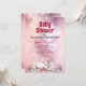 Este convite de design de formato vertical apresenta flores tropicais e um flamingo ao longo do fundo, o texto central é realçado sobre um fundo de boque. Isto pode ser usado para um chá de fraldas ou outra celebração. Personalize o texto, remova o texto ou edite usando a ferramenta design para selecionar um estilo de fonte, tamanho e cor preferidos. Alguns elementos de design também são usados no verso do convite.