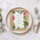 Este design de convite para casamento guardado apresenta um quadro colorido de flores e folhas tropicais, complementado por elegante tipografia retrô personalizável. É perfeito para cenários tropicais.
