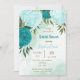 Belo chá de panela com tartaruga e flores azuis-claras e folhas verdes Os detalhes da brilha do ouro são simulados. É adequado para convites para noivas e chás de fraldas. PARA MAIS PRODUTOS CORRESPONDENTES, clique na coleção acima ou entre em contato comigo