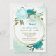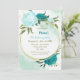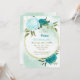 Belo convite de aniversário com tartaruga e flores azuis-claras e folhas verdes Os detalhes da brilha do ouro são simulados. É adequado para convites para noivas e chás de fraldas. PARA MAIS PRODUTOS CORRESPONDENTES, clique na coleção acima ou entre em contato comigo