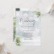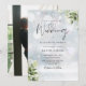 Este convite de casamento de inverno com folhas botânicas elegantes e folhagem verde pode ser personalizado com suas informações em tipografia sofisticada com sua foto especial no verso. Projetado por Thisisnotme©