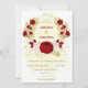 Vermelhos escuros românticos e flores brancas com folhas douradas convite para casamento da coroa botânica Os detalhes da brilha são simulados. É adequado para casamento e festas de noivado.