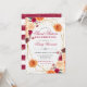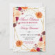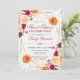 Elegante Boho Watercolor Vermelho e Laranja caem flores e design de folhagem com estrutura geométrica dourada, confete de brilho dourado e fundo branco de renda