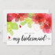 Flores vermelhas etéreas e estilo cursivo de escrita manual caligrafia casamento floral de primavera "Você será minha dama de honra?". Um design bonito que apresenta flores vermelhas e cor-de-rosa com folhas verdes.