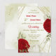 Convites flores vermelhas folhas verdes casamento