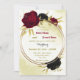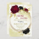 Bonito convite para o casamento, com flores negras e vermelhas e folhas de ouro num elegante círculo de ouro. São simulados os detalhes do brilho dourado. É adequado tanto para os convites para o casamento como para o noivado. PARA MAIS PRODUTOS CORRESPONDENTES, clique na coleção acima ou entre em contato comigo