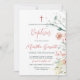 Celebre a alegre ocasião do batismo de sua filha com nossos cartões de convite lindamente projetados, com uma bela cor d'água vermelha e flores verdes. O vibrante trabalho de arte floral adiciona um toque de elegância e frescura, capturando perfeitamente a essência desse evento especial. A simples e sofisticada inscrição melhora o design geral, criando um eterno e um convite para na moda. Cada cartão é meticulosamente elaborado para garantir uma primeira impressão memorável para os seus convidados. Ideal para anunciar esse marco significativo, nossos convites para batismo combinam lindamente beleza e graça artística em um design harmonioso.