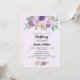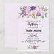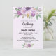 Um fundo violeta, lavanda, de cor aquosa. Decorados com flores violetas e púrpuras, de cor aquosa e verde e uma cruz de ouro. Personalize e adicione um nome e detalhes de recepção.