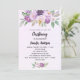 Um fundo violeta, lavanda, de cor aquosa. Decorados com flores violetas e púrpuras, de cor aquosa e verde e uma cruz de ouro. Personalize e adicione um nome e detalhes de recepção.