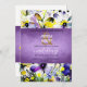 Um convite de casamento sofisticado feito de flores violetas elegantes e amarelas alegres, com caligrafia requintada,