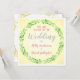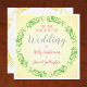 Convites de casamento elegantes com um floreio circular verde e cor de fundo sépia gradiente.