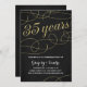 Este convite de festa de aniversário de casamento de 35 anos, sofisticado e elegante, apresenta floreios vintage elegantes, caligrafia cursiva que lê "35 anos", folha de ouro falso e um fundo preto chic.