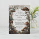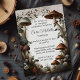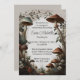 Uma ilustração caprichosa de uma floresta de cogumelos em tons suaves de bege, verde e vermelho.