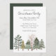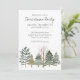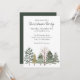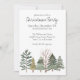 Este convite de festa de Natal simples e elegante, mas festivo, apresenta um design aquarelado aconchegante. Uma imagem de uma floresta de inverno é colocada na parte inferior, com várias árvores polvilhadas com neve.