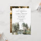 Este convite de casamento elegante de floresta de lago de aquarela pode ser personalizado com suas informações em tipografia moderna e uma foto especial no verso. Projetado por Thisisnotme